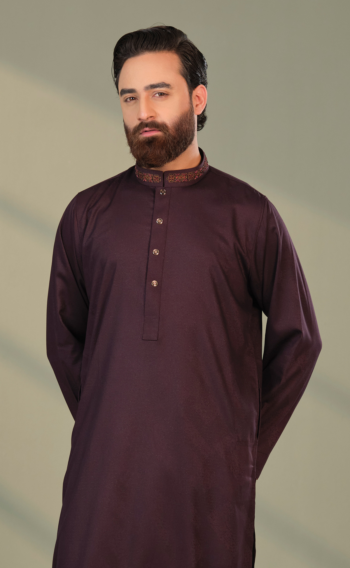 Purple long Panjabi Dark Purple